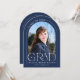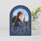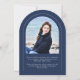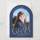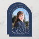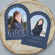 Este anúncio de graduação em arco simples, azul e branco, de marinho azul, apresenta um delicado quadro de arco, 2 modelos de fotografia e elegante tipografia moderna.