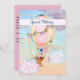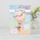 Anúncio do nascimento da sua nova menina num cartão de solteiro. O design é um Balão de Ar Quente segurando uma menina em rosa, um céu bonito, e nuvens sorrindo. As palavras na parte de trás do cartão podem ser alteradas. Obrigados para Cortes de Design, Fabrica Criativa e Hungryjpeg para alguns dos elementos do design.