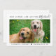 O anúncio moderno do noivado que mostra a foto de seus animais de estimação, "Our Humans Are Getting Casried" em uma mistura de simples tipografia e um roteiro de na moda, e seus primeiros nomes na frente; você pode personalizar para "My Humans" para um gato ou cão e adicionar sua localização e data de casamento, se desejar. No verso, personalize sua mensagem de lançamento do noivado, salve os detalhes da data e adicione seus nomes (e os nomes dos animais de estimação também) em um script semelhante a assinatura.