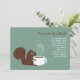 Cute Squirrel Party Announcement. This woodland squirrel enjoys a steaming hot cup of coffee. A fun invitation your guests will love. See Jenn's Doodle World for even more party supplies featuring this squirrely design.