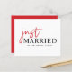 Recem casados! Anuncie seu casamento com este anúncio de casamento de fotos personalizável. Apresenta tipografia escrita à mão em vermelho. Personalize adicionando seus detalhes. Este anúncio de recem casados moderno é perfeito para qualquer tema de casamento ou estação. Outras cores estão disponíveis.
