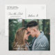 Impressione seus convidados com um cartão postal de salve a data elegante e sofisticado! Este design apresenta uma sobreposição de fonte de roteiro e espaços reservados para sua foto e texto personalizados.