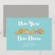 Mudou-se para casa no novo ano? Compartilhe seu novo endereço com este cartão de anúncio divertido. Esta design apresenta a frase "novo ano de casa" em letra escrita com pincel branco, uma fileira de casas desenhadas com mão colorida, todas sobre um fundo azul claro. Os detalhes do seu endereço estão em baixo, em branco. O backer deste design está em cinzas sólidas.