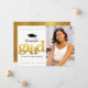 Anuncie ao mundo que seu formando favorito alcançou seu marco com este anúncio impressionante, simples, moderno, personalizado. A tipografia da folha de ouro a negrito, gráfica, falsa e um ícone de boné preto recobre um fundo branco. No lado direito, adicione uma foto da sua escolha. Personalize o texto personalizado com o nome, o nome da escola e o ano de aula do seu formando. Folha de ouro falsa nas costas. Correspondendo e coordenando cartas de agradecimento, bonés, ventiladores, guardanapos, placas, banners e outros arranjos de graduação também estão disponíveis nesta coleção de tendências e na moda. Garantido para adicionar diversão na moda à sua ocasião especial! Basta substituir a foto de amostra por uma de suas, digitar o nome do seu formando, o nome da escola e o ano de aula, e você pode personalizar facilmente esse anúncio de graduação. Por favor, me mande mensagens com quaisquer perguntas ou solicitações.