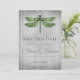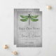 Personalize um anúncio de casamento único com uma Dragonfly Judaizada Salve a Data. O design de lançamento apresenta uma libélula com joias vibrantes contra um fundo listrado vintage. Salve ainda o anúncio de data disponível para este design em várias cores.