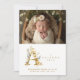 Dreamy Romantic Floral A Initial in Gold Glitter Effect for Newborn Photo Announcement Card Design.