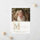 Dreamy Romantic Floral M Initial in Gold Glitter Effect for Newborn Photo Announcement Card Design.
