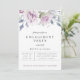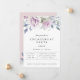 Flores de jardim de aquarelas elegantes e arranjos de folhagem em tons de tendências de violeta empoeirado, rosa-pincel, creme, azul e verde, convite à festa de noivado. A parte traseira da placa apresenta cor rosa pincelada empoeirada e arranjo floral correspondente.