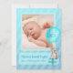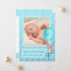 Um doce cartão de anúncio azul-bebê com uma bela coala, presente e imagem de balão. Personalize com seus detalhes e uma foto especial do seu filho. A maneira excelente de anunciar sua nova chegada à família e aos amigos. Urso coala com cor d'água original com arte de balão e design por Sarah Trett para www.mylittleeden.com no Zazzle.