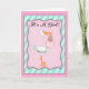 Anuncie seus pequenos feitiços de alegria com esta carta rosa e verde com uma cegonha segurando uma menina afro-americana.