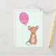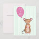 NewParkLane - Cartão postal, com um lindo rato da floresta em aquarela, com um balão rosa, com a citação: 'É uma menina!', contra um fundo listrado de verde menta. O verso é rosa bebê.
