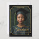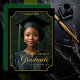 Celebrate a milestone moment with this elegant "Class of 2026" portrait-style graduation announcement. Featuring a dramatic black background, refined gold accents, and an ornate frame design, this vertical layout showcases the graduate’s photo in a timeless, formal presentation. Personalized with the graduate’s name, school, and class year, this design creates a polished keepsake perfect for honoring high school or college achievements. Ideal for sharing with friends and family, this sophisticated graduation announcement highlights pride, accomplishment, and the beginning of a new chapter. Back Background is dark green.