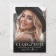 A simple and elegant boho-inspired graduation announcement with a modern, high-contrast look. The front features a full-page photo with a black gradient at the bottom, allowing the white text to stand out clearly and beautifully. Change to “Class of 2026” or any year in clean white fonts, followed by the graduate’s name and school in refined handwritten script for a timeless yet updated feel.