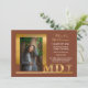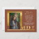 Classe e elegante anúncio de formatura de médico com um texto dourado "MD" e caduceu, design de Holiday Hearts Designs (direitos reservados). Modelo de foto cortesia Unsplash.