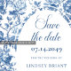 Anúncio Elegante Floral Azul Escuro para Salvar a Data do