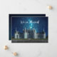 Mudamos o anúncio mostra um grande castelo rico, ou castelo, à noite com um céu azul e estrelas. Moody, sonhadora, legal e ligeiramente assustadora. Personalizar e personalizar o novo texto de endereço. Uma maneira engraçada e humorística de anunciar sua grande mudança para uma nova casa de sonho.