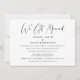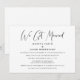 Elegante convite de casamento ou anúncio de casamento menor e recepção para informar familiares e amigos que você fugiu para se casar, e convidá-los para uma recepção ou festa pós-casamento. "Nós Nos Casamos" está escrito em um estilo elegante e você pode adicionar seus nomes, data do casamento e detalhes do convite da recepção em tipografia moderna simples.