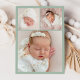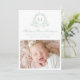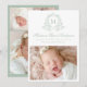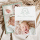Anuncie a chegada do seu bebê com esta elegante carta verde de nascimento de fotografia. Apresentando o monograma do seu bebê, inicialmente moldado por uma delicada crista floral em verde de sábio suave sobre um fundo branco, este design combina elegância do eterno com o charme botânico moderno. O nome do seu cheio aparece na caligrafia graciosa correspondente, com espaço para estatísticas de natalidade, nome de família e uma foto horizontal de recém-nascido abaixo. O verso inclui uma coordenação de três fotos, perfeita para compartilhar momentos ainda mais doces. Personalize com os detalhes e fotos do seu bebê para criar uma bela manutenção para a família e os amigos.
