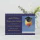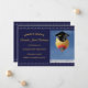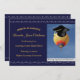 Frente: Fronteira de rolagem Elegante e texto amarelo ouro adoram este anúncio de graduação. Um balão de ar quente com um boné de formatura é apresentado com as palavras "Movendo-se para Cima e para a Frente!" Voltar: Fronteira rolante elegante, Classe de 20YY, Dois balões de ar quente, e a frase: "Movendo-se para cima e para a frente!"