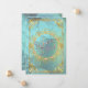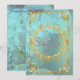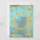 Um convite de casamento elegante com bolhas de teal suave e um design de filigrana dourada. Personalize com as informações do seu casamento. Criado por Robin D. Cox.