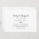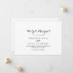 Este anúncio moderno da elopeia da caligrafia tem uma bela design rustica. O design simples e elegante apresenta a tipografia de scripts clássicos e ricos em preto e branco. Personalize a placa com os detalhes do seu casamento e use a modelo na parte traseira para anunciar uma alteração de endereço, informações de recepção ou quaisquer outros detalhes que você gostaria de compartilhar.