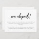 Anúncio de Elopemento de Casamento de Script Negro e Branco minimalista. Personalize com sua mensagem de elopemento para familiares e amigos na frente e adicione as iniciais de noiva e noiva à parte traseira da placa.