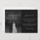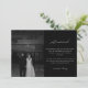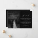 Anúncio mínimo moderno de casamento negro. Personalize este cartão de anúncio de casamento preto simplista e elegante com uma das suas fotos favoritas de casamento, noiva e noiva, e a sua mensagem pessoal de "recem casados" para familiares e amigos.