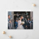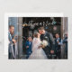 Anúncio de casamento/elogio moderno apresentando um design simples com "recem casados" em um elegante roteiro manuscrito com seus nomes e data de casamento sobre sua foto favorita.