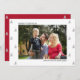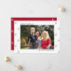 Carregue sua foto neste cartão de anúncio de gravidez de férias limpo e minimalista. O modelo de foto está configurado para que você adicione sua foto à frente, em formato paisagem, assim como sua mensagem no verso. O texto da frente é totalmente editável e, atualmente, lê-se "feliz natal da nossa família de quatro", que em breve será. Você pode, é claro, personalizá-lo para Felizes Feriados e família de seis, por exemplo, ou quaisquer ajustados que você precise. A design tem simples árvores de natal esboçadas em pincel e uma paleta de cores moderna de vermelho, cinza, preto e branco.