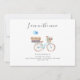 Em movimento na minha bicicleta, mude de endereço de cartão de anúncio com uma bicicleta feminina de cor d'água com um cesto de flores e luggages no rack. Perfeito para informar os amigos e a família sobre seu novo endereço e onde a provável festa de aquecimento de casa acontecerá. Adicione seus novos detalhes clicando no botão "Personalizar" acima