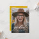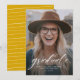 Um simples script clássico "formando" em branco acentua uma foto vertical solteiro do seu formando. Este anúncio de graduação funciona tanto para formandos da faculdade quanto para segundos graus e é simples o suficiente para deixar sua foto brilhar. É um design de eterno e também apresenta um backer listrado com uma cor personalizável (o padrão é uma forma clássica de amarelo ouro).