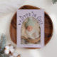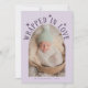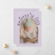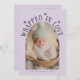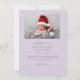 Cartão de nascimento elegante e moderno do tema do Natal, com um texto que diz "embrulhado no amor" com estrelas. Este é um cartão de anúncio de nascimento para as férias! Adicione suas fotos, estatísticas de natalidade e uma mensagem! O fundo é roxo.