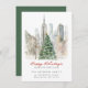 Este anúncio festivo de mudança para o Natal apresenta a frase "Feliz Natal da Nossa Nova Casa" com uma bela rua da cidade em aquarela com uma grande árvore de Natal. O anúncio é perfeito para enviar a amigos e familiares durante a temporada de festas para que saibam sobre o seu novo endereço. A frente do anúncio apresenta a frase e a cena da rua da cidade nevada em aquarela, e inclui o seu novo endereço e informações de contato. O design geral é festivo e encantador, e o anúncio certamente colocará um sorriso nos rostos dos seus entes queridos.