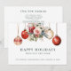 Placa Plana de Anúncio de Feriado de Nova Casa de Feriado com Envelope... Você está se mudando durante o Natal? A frente de nossa nova placa de endereço de feriado apresenta um excelente buquê floral de cor d'água e Enfeites de natal vermelhos acima de suas informações de mudança de endereço. O texto de exemplo na frente do cartão diz: "Felizes feriados de nossa nova casa" junto com seu nome e novo endereço logo abaixo. No verso está um exemplo de texto para todas as informações que sua família e amigos precisarão manter em contato e uma saudação de Natal que você pode manter ou atualizar com suas próprias palavras. Todo o texto pode ser revisado muito facilmente usando o modelo de personalização.