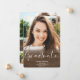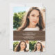 Um formando de mbre de madeira marrom russa com 4 fotos anunciadas para a graduação. Adicione sua mensagem no verso.