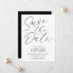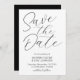 A caligrafia romântica moderna escrita minimalista a preto e branco Salve o cartão de anúncio Data.