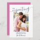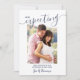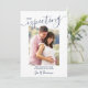 Anúncio personalizado de fotogravidez em azul e cor-de-marinho neutro do ponto de vista do gênero. O modelo de foto é configurado para você adicionar sua própria foto, que é exibida no formato de retrato. "Esperar" está escrito em tipografia elegante escrita à mão e a mensagem de anúncio de gravidez é perfeitamente editável para você se adaptar com a data de vencimento do bebê e seus nomes. Uma design simples e moderna para compartilhar suas maravilhosas notícias.