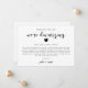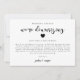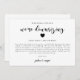 Cartão de atualização de casamento simples e moderno com design preto e branco e um texto em letra cursiva que diz "estamos reduzindo" com um coração. O cartão explica como foi uma decisão difícil, mas necessária para priorizar a saúde e o bem-estar dos convidados.