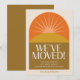 Anuncie sua nova casa com estilo com este cartão personalizado "Mudamos" inspirado no retro, apresentando um ousado design de explosão solar em tons quentes de laranja, mostarda e creme. Perfeito para famílias que procuram compartilhar seu novo endereço de forma moderna e nostálgica, este cartão combina charme vintage com tipografia contemporânea. Ideal para manter amigos e entes queridos atualizados, este design agrada a quem aprecia papelaria personalizada e atraente, com um toque artístico único.
