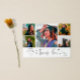 Cartão de foto de anúncio de formatura moderno e caprichoso com 5 fotos na frente e 1 no verso. O texto com escrita à mão diz "Obrigado" com estrelas brilhantes. Adicione o nome do graduado, informações e mensagem para personalizar este cartão.