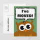 Eu movo o novo cartão postal de endereço | desenho animado de coruja marrom. Mensagem personalizada para mudar para nova casa ou área. Mudança de endereço no verso.