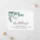 This botanical moving announcement card features watercolor eucalyptus greenery and reads "New Address" in stylish script typography.