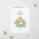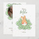 Faire-part naissance lapin mignon en illustration avec fleurs à l'avant pour informer votre famille et vos amis de l'arrivée de bébé! De l'autre côté, il suffit de remplacer l'exemple d'image par votre photo préférée de votre nouveau-né et de personnaliser le texte des deux faces avec vos propres détails.