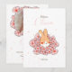 Faire-part naissance lapin mignon en illustration avec fleurs à l'avant pour informer votre famille et vos amis de l'arrivée de bébé! De l'autre côté, il suffit de remplacer l'exemple d'image par votre photo préférée de votre nouveau-né et de personnaliser le texte des deux faces avec vos propres détails.