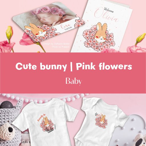 Lapin mignon et fleur roseCriado por Tiphaine Boilet