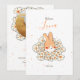 Faire-part naissance lapin mignon en illustration avec fleurs à l'avant pour informer votre famille et vos amis de l'arrivée de bébé! De l'autre côté, il suffit de remplacer l'exemple d'image par votre photo préférée de votre nouveau-né et de personnaliser le texte des deux faces avec vos propres détails.