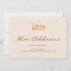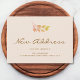 They feature simple russet watercolor leaves and elegant script typography that says "New Address".