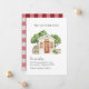 Anuncie sua jogada com charme! Este cartão "We Have Moved" apresenta uma ilustração aquática de uma fazenda rústica com porta vermelha, jardim botânico e um padrão de gingham vermelho no verso. Excelente para compartilhar seu novo endereço em um estilo de país quente!