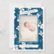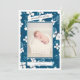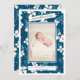 Uma mão moderna, elegante e fofa pintou um beige romântico de cor d'água e flores de marfim no anúncio de nascimento de bebê do fundo azul do oceano. Basta adicionar sua foto.