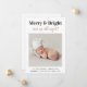 Anúncio divertido de natal com fotos de Natal apresentando a foto de seu recém-nascido com "Feliz e Brilho e acordado a noite toda!" escrito em uma mistura de tipografia elegante e um roteiro de ouro na moda. Adicione o nome do seu bebê e as estatísticas de natalidade.
